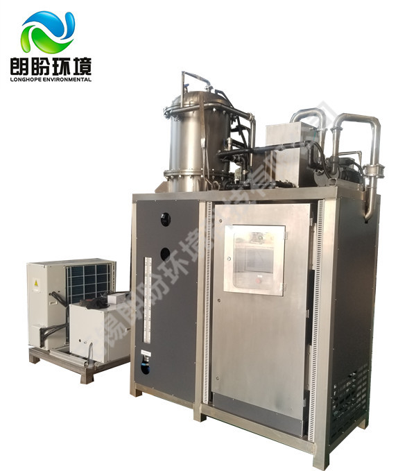 • 低溫萃取濃縮器的原理是物料的沸點隨著壓強的降低而降低。低溫節(jié)能濃縮設備整體保持真空狀態(tài),濃縮室的真空度約為95%~97%,在此壓強下水的沸點為35℃~37℃,系統(tǒng)無需配備進料泵,利用蒸發(fā)室的負壓將物料吸進蒸發(fā)室,通過強制循環(huán)方式將物料循環(huán)霧化,傳輸至換熱器上,物料中水分被蒸發(fā),物料連續(xù)循環(huán)霧化,通過蒸發(fā)室液位自動補料,濃度達到要求后作為濃縮液排出設備。濃縮液一般粘度較大,需采用泵抽出。