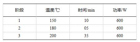 使用硝酸、鹽酸和氫氟酸作為實驗的消解試劑,稱取鉍精礦樣品0.1g(精確至0.1mg)于消解罐中,加入6mL鹽酸、2mL硝酸、0.5mL氫氟酸,靜置5min左右,組裝消解罐,按照如下設置參數進行實驗: