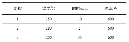 稱取曬干粉碎后的蘑菇樣品三組,每組質(zhì)量約0.3g(精確至0.1mg),加入8mL硝酸,放置在趕酸器上120℃預處理30min左右,待黃煙冒盡后,取下冷卻,補加2mL硝酸,靜置10min左右,組裝消解罐,按照如下設置參數(shù)進行實驗: