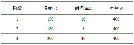 稱取鋱樣品約0.1g(精確至0.1mg),加入8mL硝酸,靜置30min左右,待無明顯反應后,組裝消解罐,按照如下設置參數(shù)進行實驗: