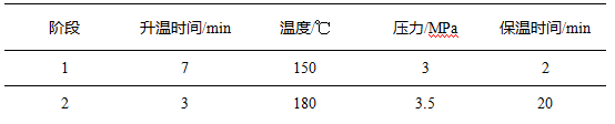 稱取明膠約0.3g(精確至0.1mg),加入10mL硝酸,靜置過夜,組裝消解罐,按照如下設(shè)置參數(shù)進(jìn)行實(shí)驗(yàn):