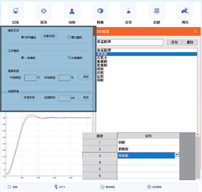 全中文操作界面,消解方案模塊式設(shè)計,直接拖拽進行設(shè)置;升溫曲線及實驗進程可實時顯示,消解狀態(tài)一目了然;試劑管理、方法建立等輕松操作,擺脫重復(fù)繁瑣的操作程序,節(jié)省實驗人員工作時間、提高工作效率。