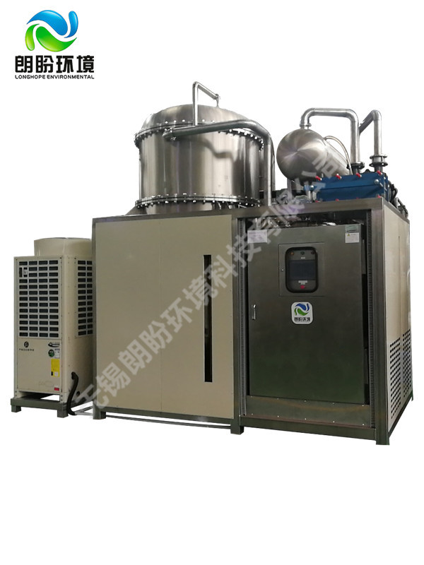低溫熱泵蒸發(fā)器由無錫朗盼環(huán)境科技有限公司主持研發(fā)生產(chǎn),是其全系列工業(yè)廢水處理技術產(chǎn)品中及其重要的一環(huán)。 V-HP系列真空熱泵蒸發(fā)系統(tǒng),獨特地采用高效的壓縮式熱泵技術,結合合適的真空運行區(qū)間,使得對于各種工業(yè)廢水的蒸發(fā)濃縮處理具有了廣泛的適應性,并且使得處理能耗大幅度的下降,不但讓各種廢水的濃縮減量在技術上更加合理,更重要的是讓應用用戶在經(jīng)濟上樂于接受。 V-HP系列真空熱泵蒸發(fā)系統(tǒng),標準工況下其主機能效比達到9以上,遠遠的超過了多效蒸發(fā)器(一效、二效、三效、四效能效比分別為0.9,1.7,2.4,3.0)擴容濃度蒸發(fā)器(能效比為4.2)。更為重要的是,由于其采用與以往不同的技術組織,其全過程運行溫度低于40℃,因而在用于工業(yè)廢水場合并伴有熱敏性物質(zhì)回收的應用中顯得非常合適。同時因為該系統(tǒng)構成中優(yōu)化了的熱泵系統(tǒng)具有足夠?qū)挿旱墓r適應性,在針對廢水液中常常遇到的蒸發(fā)濃縮過程中,沸點升高的門檻有著自適應的能力,并且依然能保持其很高的能效比。(例對NaOH 25%的溶液,其主機能效比依然可達6.5)