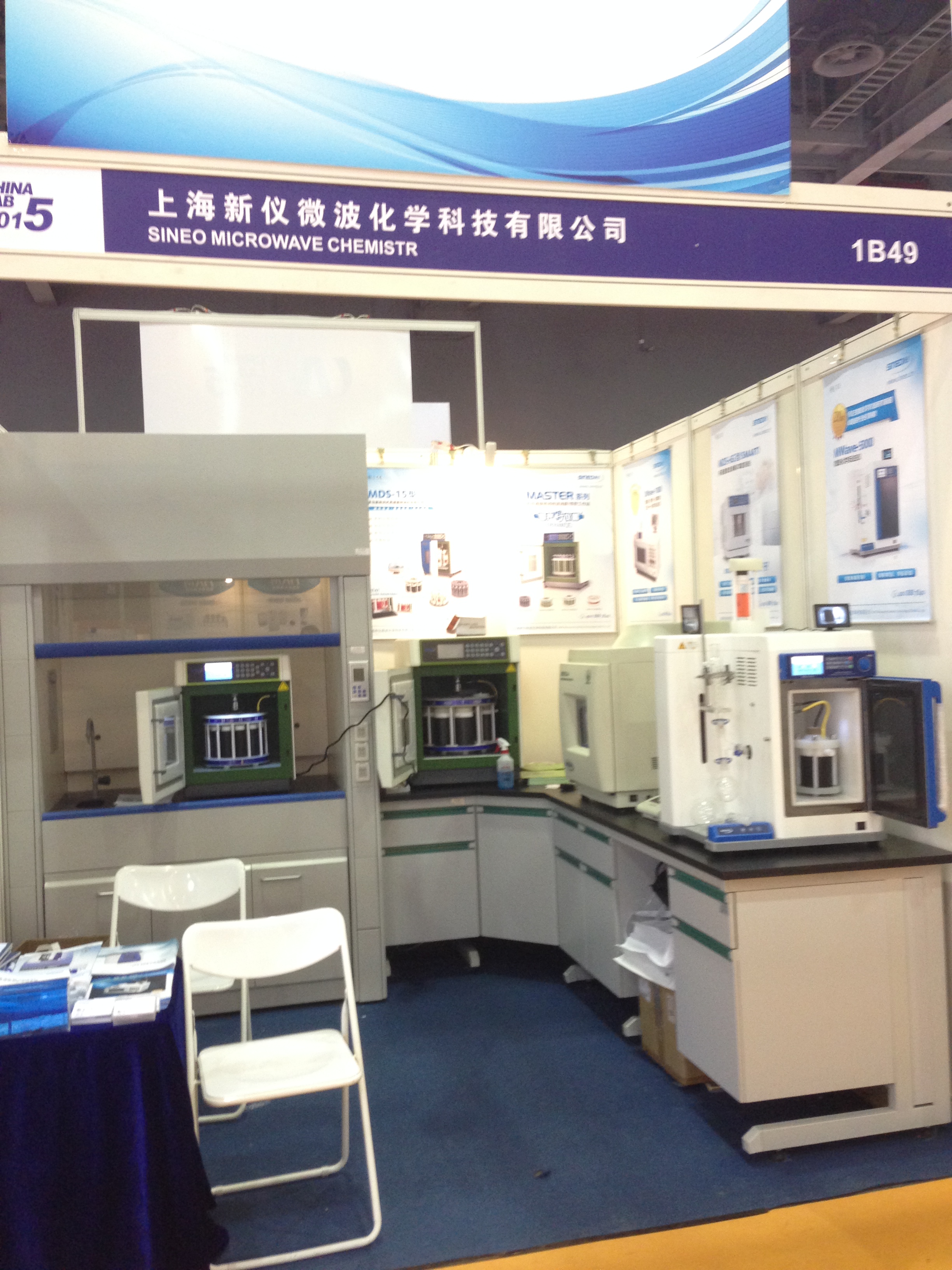 展會(huì)中上海新儀帶來(lái)了三款儀器,分別是智能微波消解儀Jupiter-A,常壓帶壓微波反應(yīng)工作站Mwave-5000和我們2014年新品MDS-15及LV-500超大容量反應(yīng)罐。這也是我們第一次在展會(huì)中展示LV-500一體式大容積消解罐組合。兩廣和海南地區(qū)被海洋圍繞,海洋環(huán)境對(duì)這一地區(qū)的生態(tài)環(huán)境安全非常重要。對(duì)于海洋環(huán)境監(jiān)測(cè),常規(guī)的消解裝置無(wú)法滿足大取樣量消解痕量元素檢測(cè)的要求,對(duì)此新儀開(kāi)發(fā)的LV-500很好的解決了這一問(wèn)題,是展會(huì)上當(dāng)之無(wú)愧的明星產(chǎn)品。