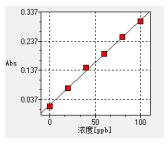 將2.2.1中的銅標(biāo)準(zhǔn)溶液,依次噴入火焰,測定吸光度,以吸光度為縱坐標(biāo),濃度為橫坐標(biāo),繪制標(biāo)準(zhǔn)曲線。波長324.7nm,光譜帶寬0.2nm,濾波系數(shù)0.3,燈電流3.0mA。