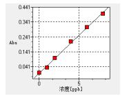 曲線方程:[A]=K1[C]+K0,K1=0.0510,K0=0.0033,線性相關(guān)系數(shù):0.99858