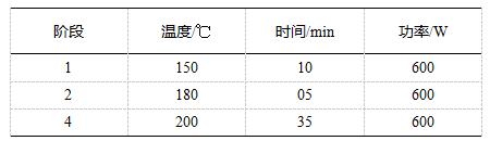 使用硝酸、鹽酸和氫氟酸作為實(shí)驗(yàn)的消解試劑,稱取硅鋼樣品0.1g(精確至0.1mg)于消解罐中,加入4.5mL鹽酸、1.5mL硝酸、2mL氫氟酸,靜置5min左右,組裝消解罐,按照如下設(shè)置參數(shù)進(jìn)行實(shí)驗(yàn):