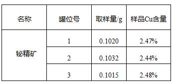 測試結果顯示鉍精礦中銅元素的含量在2.47%左右,結果在含量范圍內。