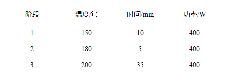 稱取陰樹脂樣品約0.2g(精確至0.1mg),加入8mL硝酸,緩慢加入1mL過氧化氫,靜置15min左右,待無明顯反應(yīng)后,組裝消解罐,按照如下設(shè)置參數(shù)進(jìn)行實(shí)驗(yàn):