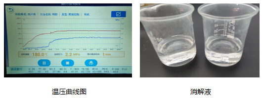 最高實(shí)驗(yàn)壓力2.3MPa,實(shí)驗(yàn)結(jié)束后,待冷卻至60℃以下(為了進(jìn)一步降低罐內(nèi)壓力,可繼續(xù)冷卻至30℃左右,再打開消解罐),將消解罐取出轉(zhuǎn)移至通風(fēng)櫥中緩慢打開,放置在趕酸器上150℃趕酸至1mL左右,將消解液轉(zhuǎn)移至燒杯中加水稀釋后,溶液澄清透明,樣品可完全消解。
